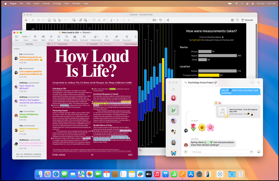 Multitasking en Pages, Tableau y Mensajes en Mac