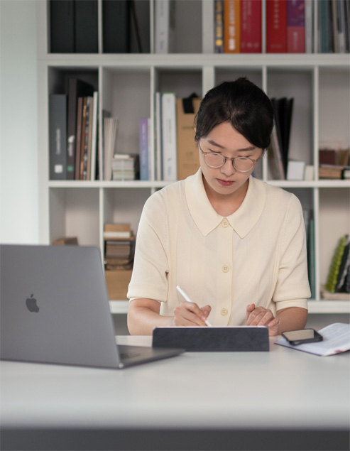 „Ich bevorzuge je nach Aufgabe unterschiedliche Bildschirmgrößen.“ Designs erstellt Elle gerne auf dem MacBook mit Photoshop, Illustrationen und Skizzen auf einem iPad mit Procreate. „Der Apple Pencil ist reaktionsschnell und fühlt sich so natürlich an, dass mir im Vergleich zu einem herkömmlichen Stift oder Bleistift nichts fehlt.“