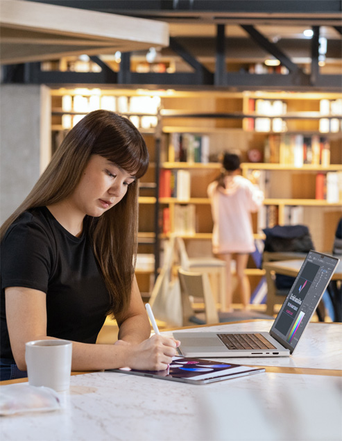 Luhan appreciates the productivity features that are built into iPadOS, such as Split Screen, which allows her to work on sketches while simultaneously staying in touch with friends via social media apps. She can even solicit immediate feedback on her work from a professor via iMessage. And during deep work sessions, Luhan uses Focus mode to block out distractions so she can immerse herself in the flow of creativity.