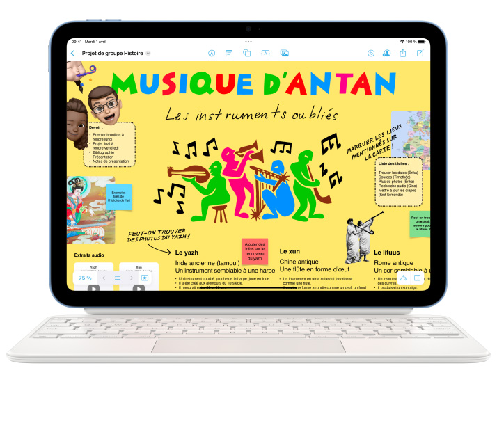 Avec les accessoires essentiels conçus spécialement pour iPad, tout devient possible. Faites des merveilles avec l’Apple Pencil et le Magic Keyboard Folio. Choisissez un Smart Folio coloré pour protéger l’avant et l’arrière de votre appareil. Et connectez-vous à des disques durs, des docks ou encore des écrans grâce au port USB‑C2.