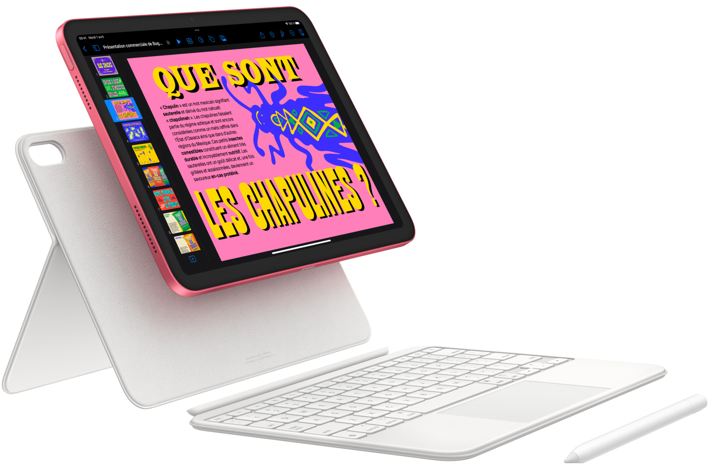 Désormais doté de la puce A16 ultra‑rapide et d’un stockage de base de 128 Go, l’iPad repousse ses propres limites. Profitez du sublime écran Liquid Retina de 11 pouces pour accomplir vos tâches, exprimer votre créativité ou vous adonner à vos activités favorites1. Et avec les accessoires conçus spécialement pour l’iPad, bénéficiez d’une polyvalence inouïe pour vous accompagner au quotidien.