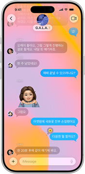 멋진 기본 탑재 옵션 중에서 선택하거나 자신이 갖고 있는 사진을 골라 ‘메시지’ 앱 대화에 자신만의 독특한 개성을 더할 수 있습니다.