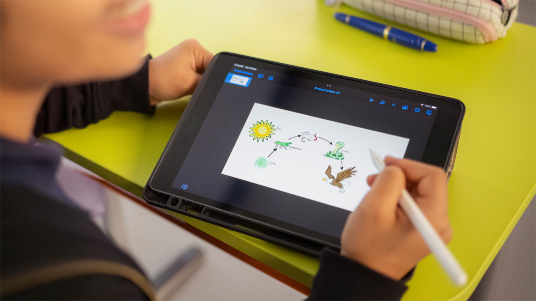 In one biology lesson, students create animated GIFs in Keynote, bringing the system of interdependent food chains to life and deepening their understanding of the subject matter — all while learning valuable creative skills. And with Apple TV in every classroom, students easily share their creations and learnings with the class.