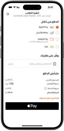 • يمكنك استخدام Apple Pay لإجراء عمليات شراء في المتاجر وعلى مواقع الويب وفي التطبيقات. وهي مقبولة على نطاق واسع وتتميز بالبساطة والأمان والخصوصية.