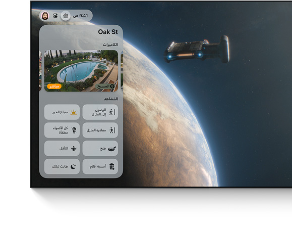 كل ما في المنزل تحت أمرك. مع مركز التحكم الذكي، ستجد جميع اكسسواراتك المتصلة في مكان واحد. فجهاز Apple TV 4K يعمل بسلاسة مع الاكسسوارات التي تدعم HomeKit، ويتيح لك ربط المزيد من الأجهزة عبر منصات أكثر من أي وقت باستخدام Matter16، وهو معيار الاتصال للمنازل الذكية. وبفضل إمكانية الوصول عن بُعد، تستطيع التحكم في منزلك الذكي من خلال تطبيق المنزل، أينما كنت وعلى أجهزة Apple الأخرى.