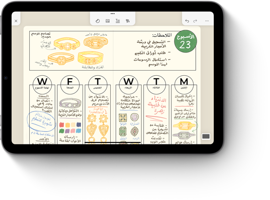 يستشعر قلم Apple Pro حركة أصابعك عند الكبس عليه، فيعرض أمامك لوحة تمكّنك بسرعة من التبديل بين الأدوات واختيار مستوى سُمك الخط والألوان.