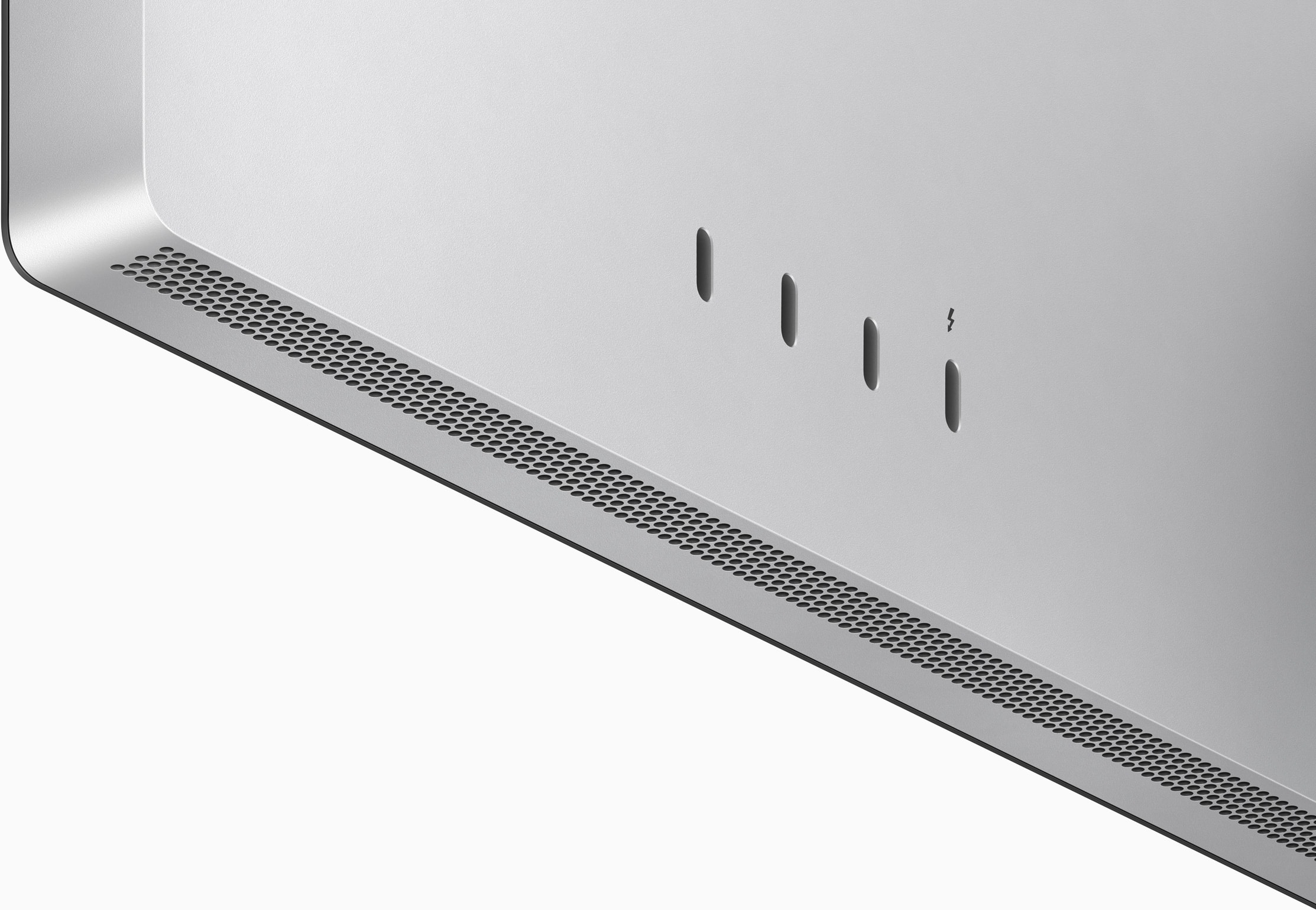 Three USB-C ports let you connect, power, and charge devices — from networking and external drives to your keyboard, mouse, or iPhone. The Thunderbolt port connects Studio Display to your Mac with a single cable. That same port can charge compatible Mac notebooks — and even fast‑charge a 14‑inch MacBook Pro.
