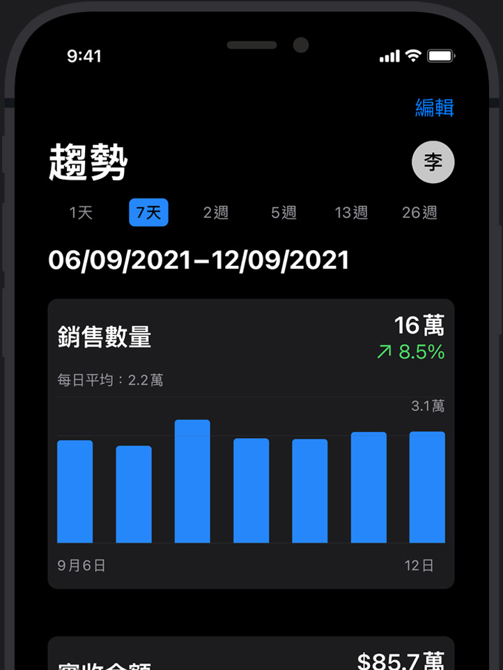 我們每個月會經由 App Store Analytics 分析數 10 億的匿名數據,以提供開發者寶貴的商業洞察。