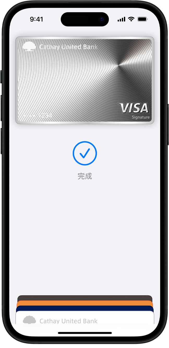 在 Apple Pay 加入信用卡或簽帳金融卡很簡單,只須打開「錢包」app,點一下加號,然後將符合資格的卡片輕觸 iPhone 背面即可1。你也可以手動加入卡片,同樣打開「錢包」app,點一下加號,然後依照螢幕上的步驟操作。過程中,你的銀行或發卡機構會向你驗證資訊。如果你擁有已配對好的 Apple Watch,也可選擇將卡片加入你的手錶。如果你升級到新 iPhone,只要一個簡單步驟,就能把卡片移轉到新的裝置。